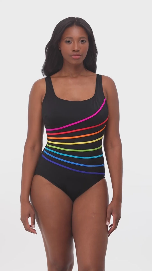 Crafted with precision and attention to detail, the Longitude 8 Overlay Fan Tank Block It Up is more than just a swimsuit; it's a statement. Whether you're lounging by the pool or strolling along the beach, this piece effortlessly exudes ageless style.