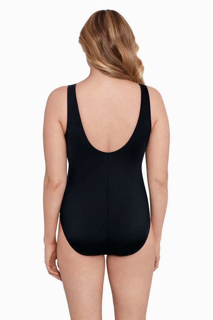 Inner firming shapewear in each Longitude swimsuit offers all day comfort while colorful prints and signature solid black styles grace this ageless swimwear. A longer length and finer fit enhance all figures, embracing confidence within.