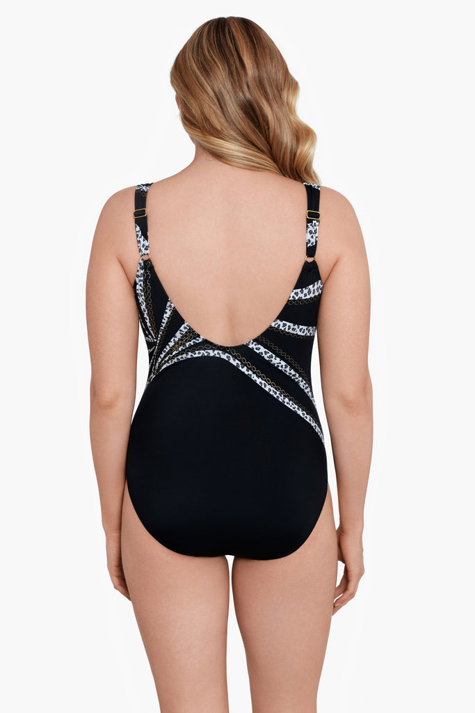 Inner firming shapewear in each Longitude swimsuit offers all day comfort while colorful prints and signature solid black styles grace this ageless swimwear. A longer length and finer fit enhance all figures, embracing confidence within.