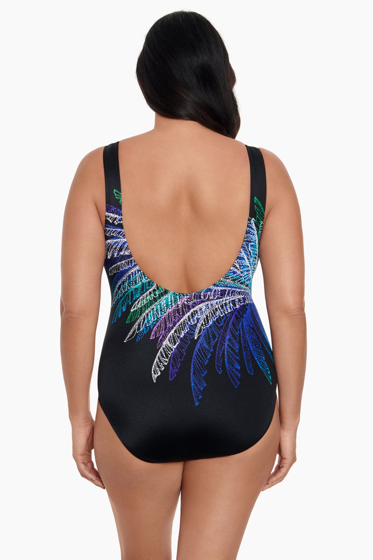 Inner firming shapewear in each Longitude swimsuit offers all day comfort while colorful prints and signature solid black styles grace this ageless swimwear. A longer length and finer fit enhance all figures, embracing confidence within.