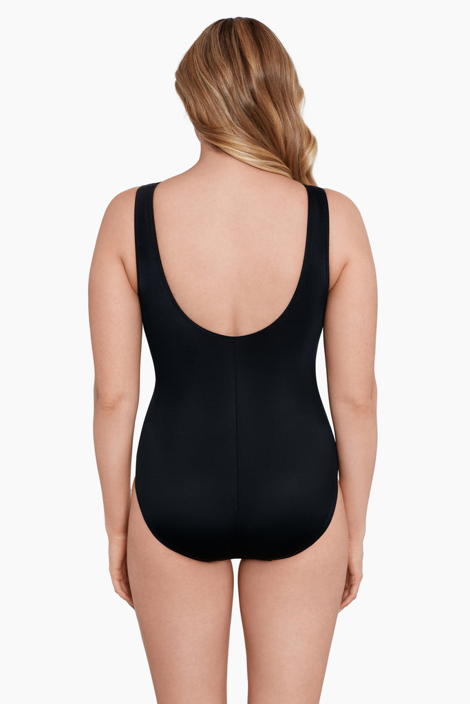 Inner firming shapewear in each Longitude swimsuit offers all day comfort while colorful prints and signature solid black styles grace this ageless swimwear. A longer length and finer fit enhance all figures, embracing confidence within.