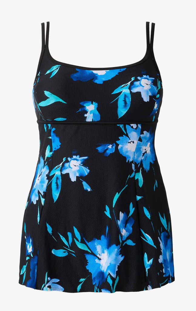 Flattering and feminine, this swim dress brings a touch of charm to your swim collection. The princess seams and empire waist create a sleek, elongating silhouette, while adjustable double straps ensure a perfect fit. With full-body control and powernet lining for subtle shaping, it's the ultimate blend of fashion, function, and a little fairy-tale magic.