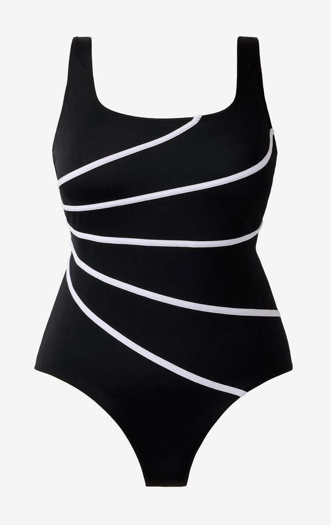 Plus Size Long Torso Fan Tank One Piece - Black/White Solidtude