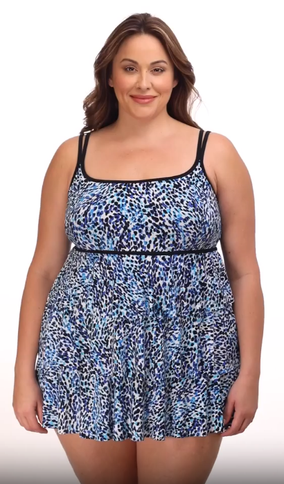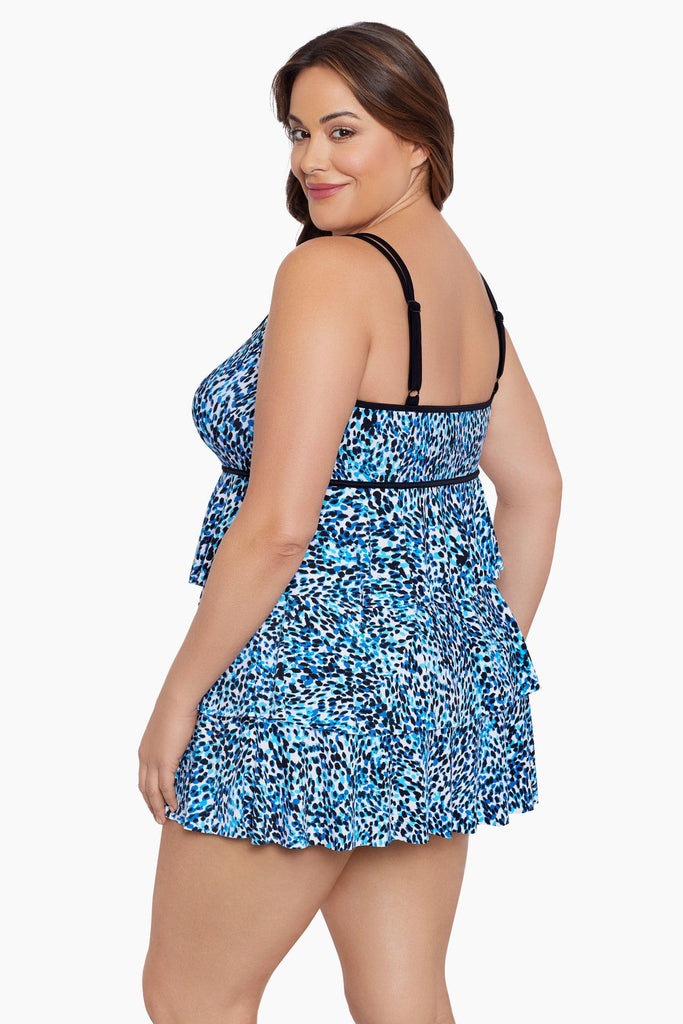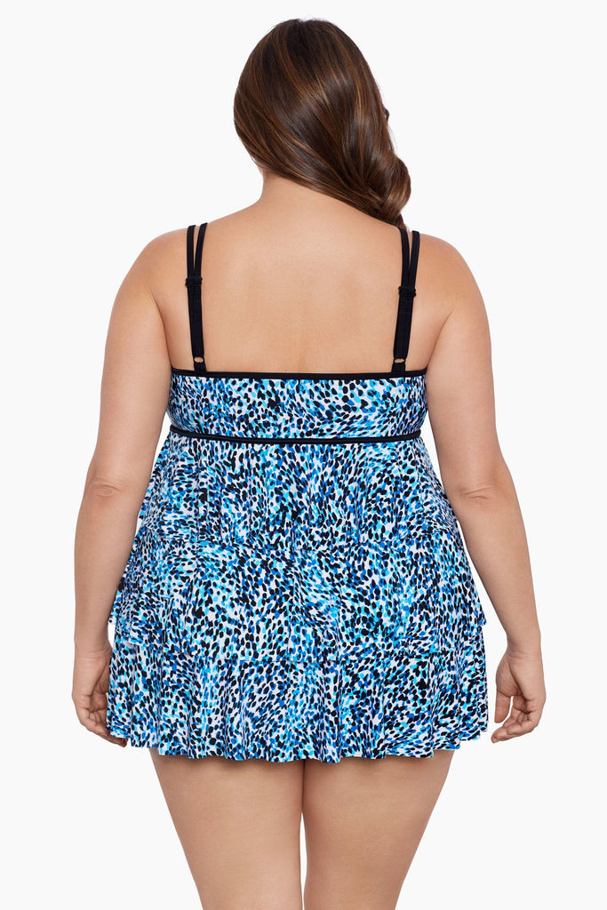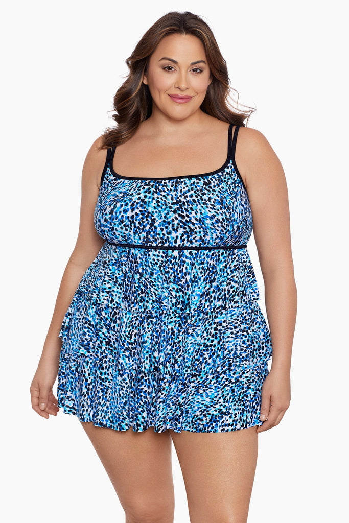 Plus Size Long Torso Triple Tier Swim Dress - Spotty Skin
