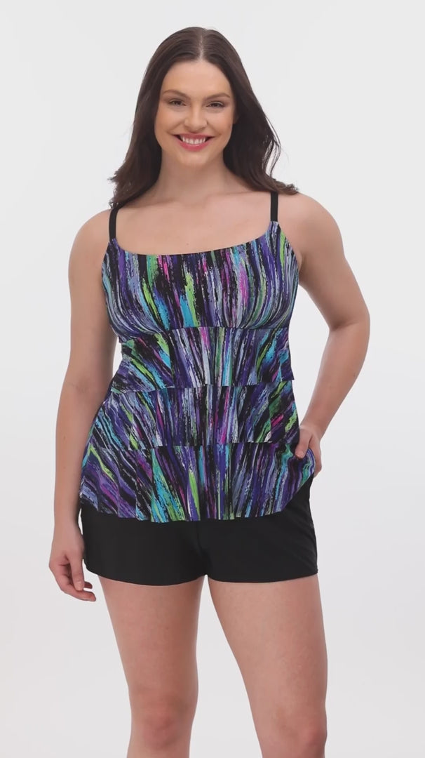 Long Torso Ruffle Faux Shortini - Brilliant Streaks