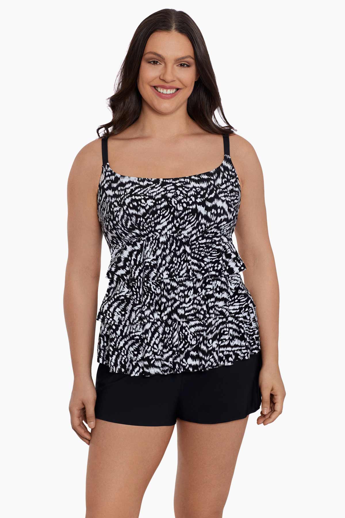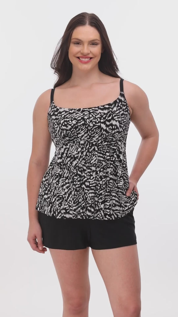 Inner firming shapewear in each Longitude swimsuit offers all day comfort while colorful prints and signature solid black styles grace this ageless swimwear. A longer length and finer fit enhance all figures, embracing confidence within.