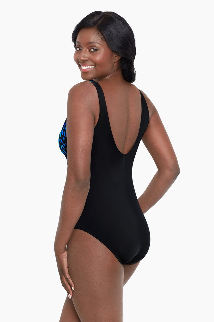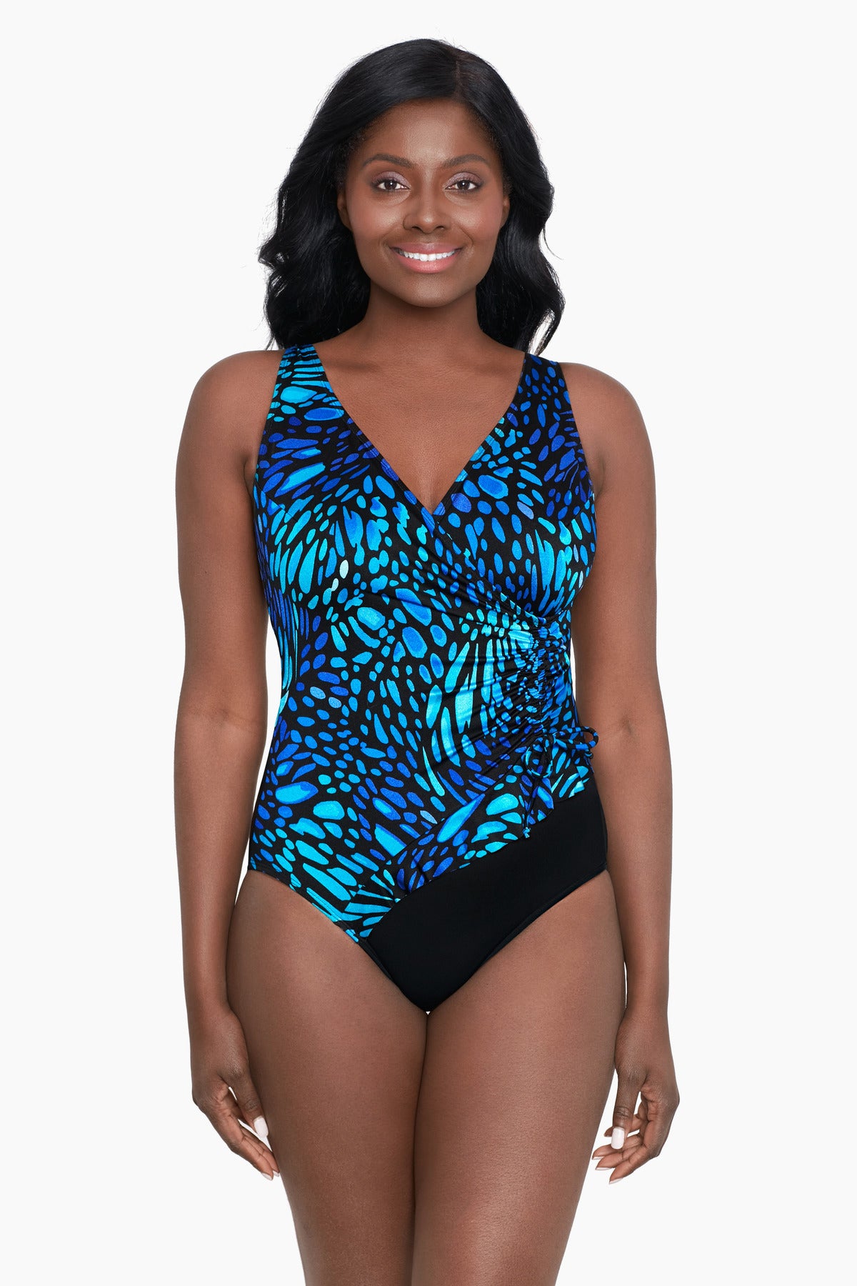 Inner firming shapewear in each Longitude swimsuit offers all day comfort while colorful prints and signature solid black styles grace this ageless swimwear. A longer length and finer fit enhance all figures, embracing confidence within.
