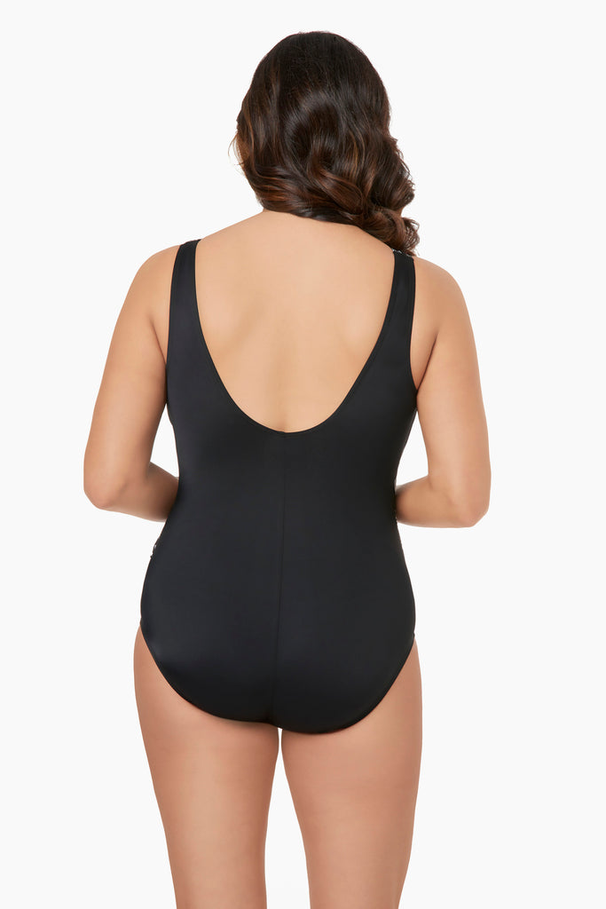 Inner firming shapewear in each Longitude swimsuit offers all day comfort while colorful prints and signature solid black styles grace this ageless swimwear. A longer length and finer fit enhance all figures, embracing confidence within.