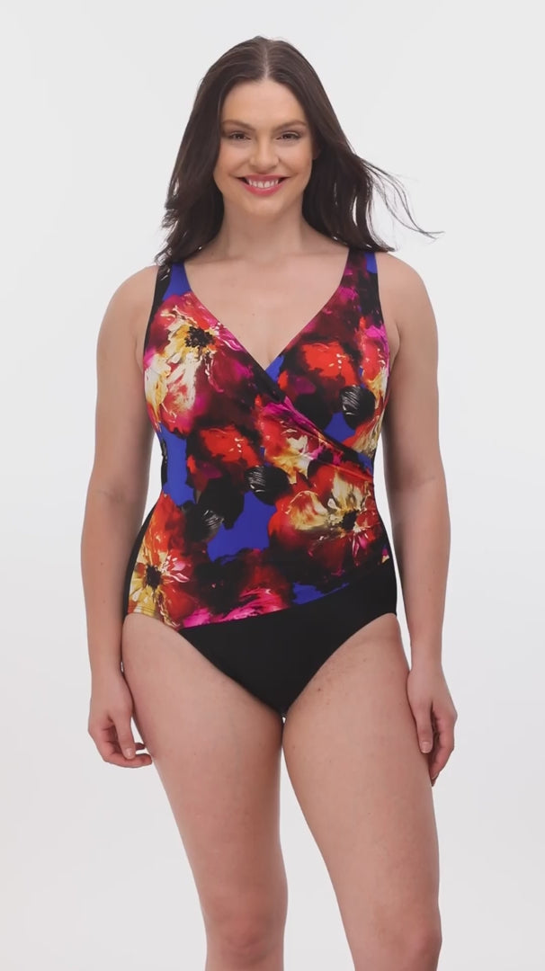Inner firming shapewear in each Longitude swimsuit offers all day comfort while colorful prints and signature solid black styles grace this ageless swimwear. A longer length and finer fit enhance all figures, embracing confidence within.