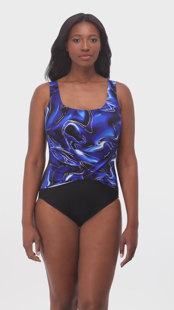 Inner firming shapewear in each Longitude swimsuit offers all day comfort while colorful prints and signature solid black styles grace this ageless swimwear. A longer length and finer fit enhance all figures, embracing confidence within.