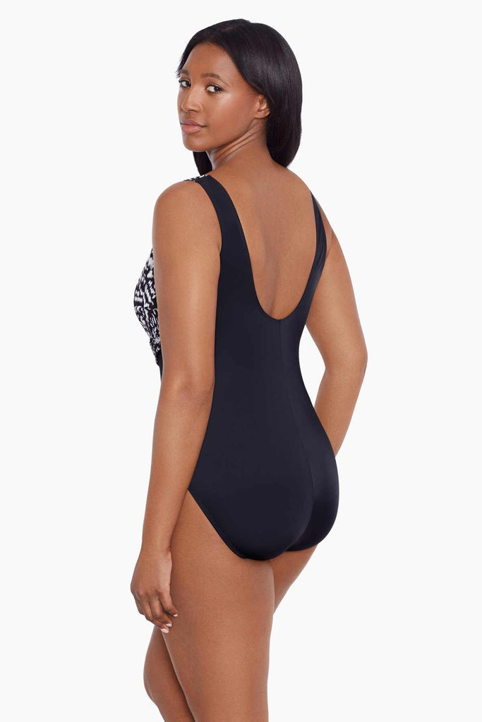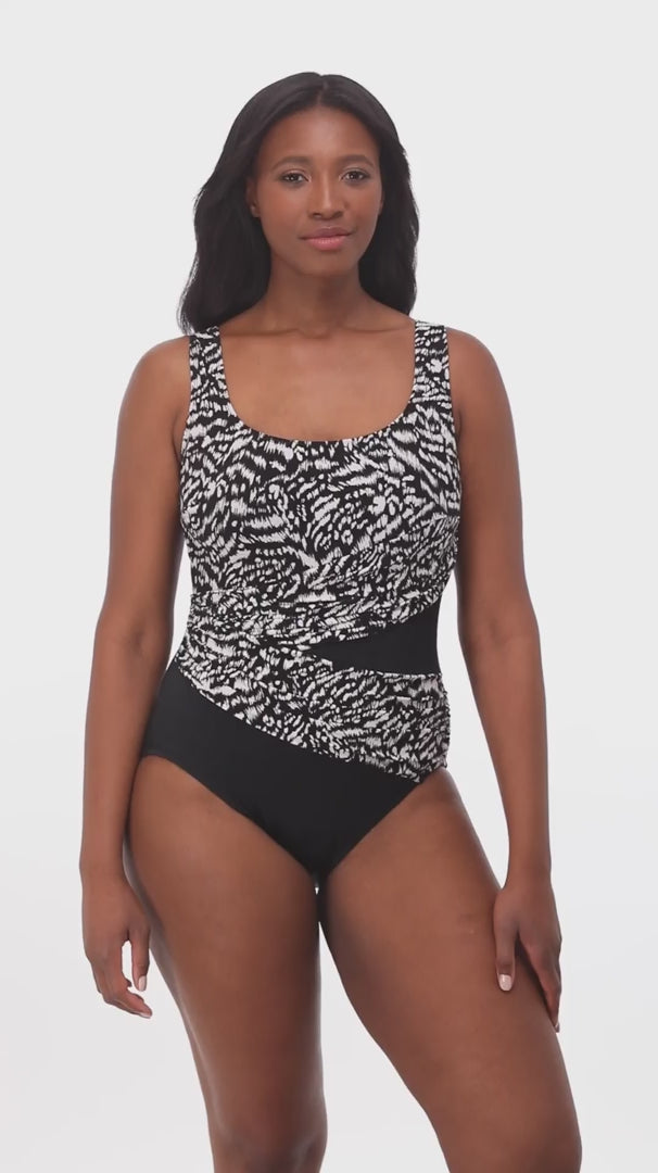 Inner firming shapewear in each Longitude swimsuit offers all day comfort while colorful prints and signature solid black styles grace this ageless swimwear. A longer length and finer fit enhance all figures, embracing confidence within.