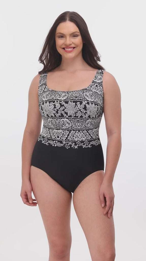 This isn’t just any one-piece… it’s the one-piece. Inner firming shapewear in each Longitude swimsuit offers all day comfort while colorful prints and signature solid black styles grace this ageless swimwear. A longer length and finer fit enhance all figures, embracing confidence within.