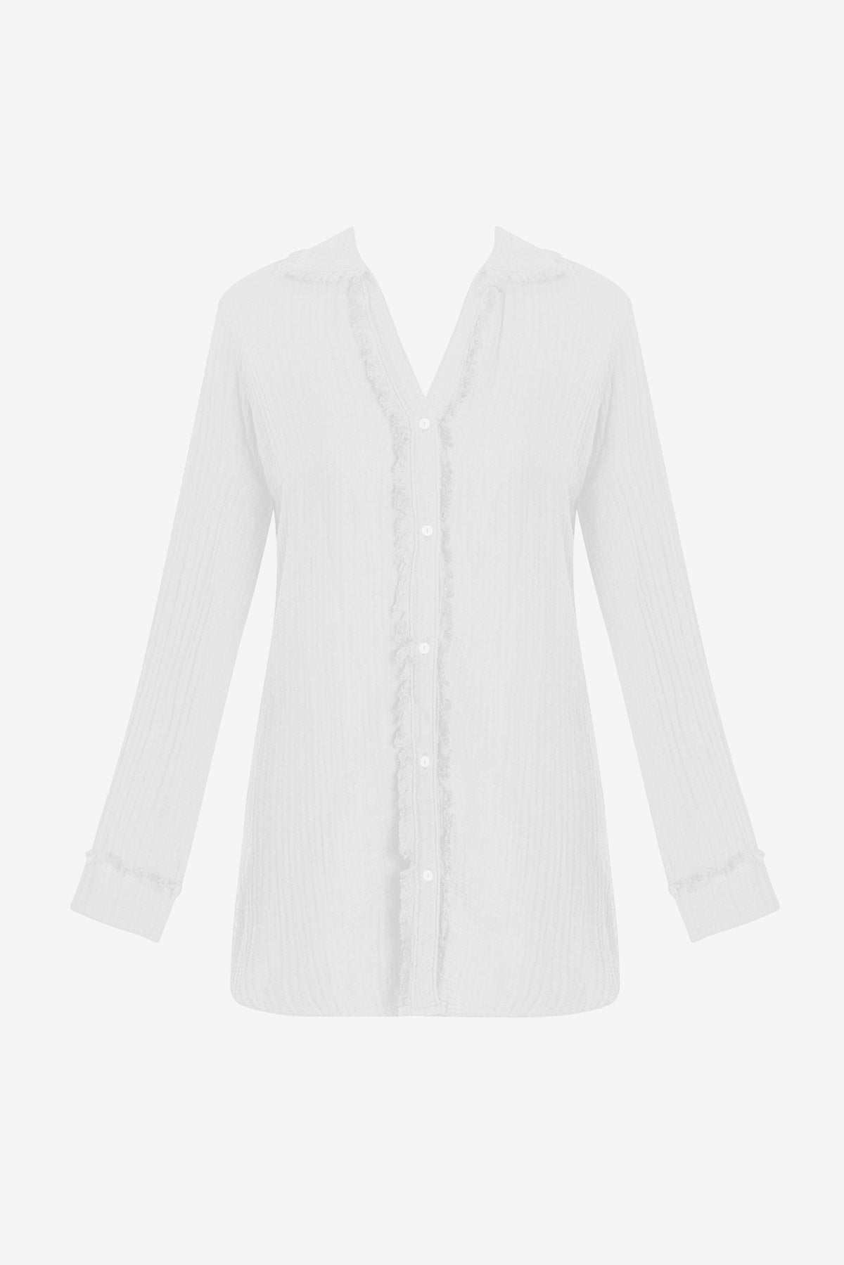 Laguna Fray Shirt takes a classic and adds some edge (literally). She’s a little rebellious, a little undone, but always full of personality.