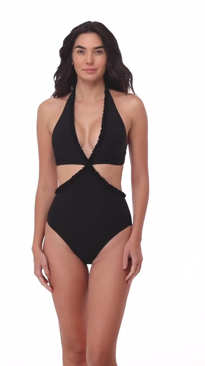 Sonny Cutaway rewrites the rules of romance. Her flirty cutouts and delicate ruffle piping trace every curve, for a fierce and fun-loving silhouette.