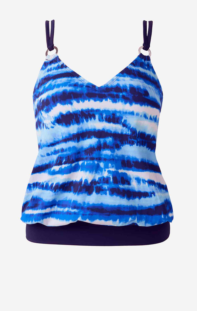 V-Neck Blouson Ring Tankini Top - Tiger Sunrise