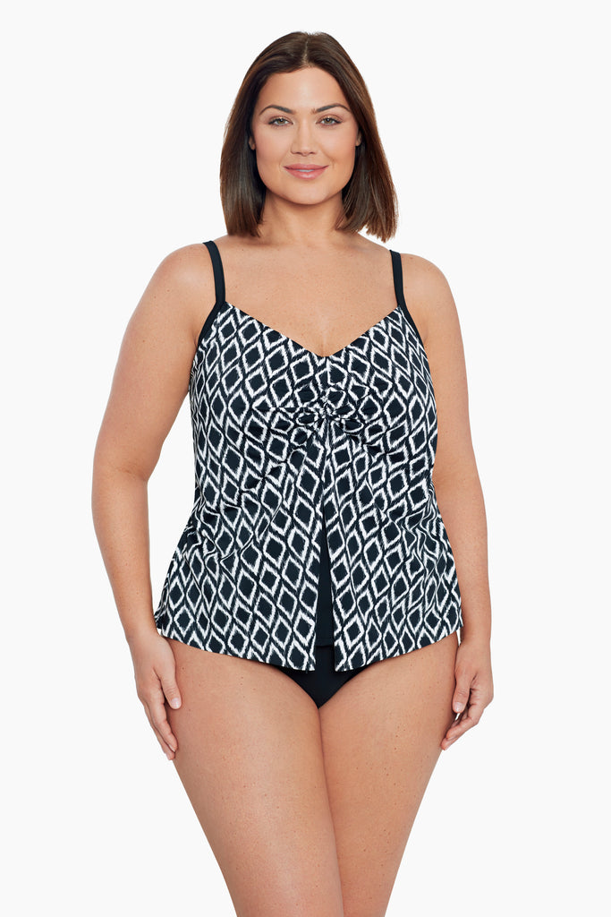 Plus Size Knotted Flyaway Tankini Top - Batik Charm